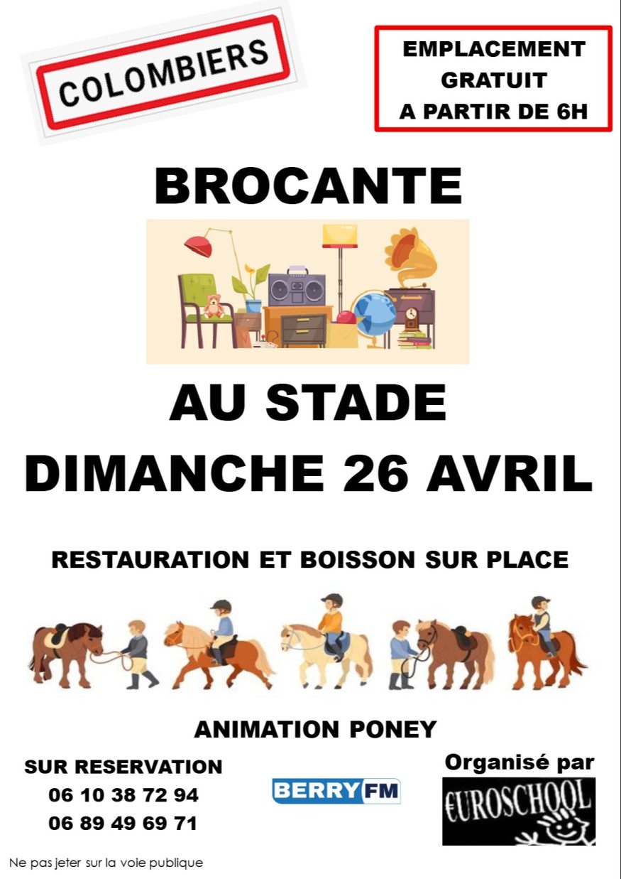L'association €uroschool vous propose une brocante le dimanche 26 avril à partir de 6h au stade.